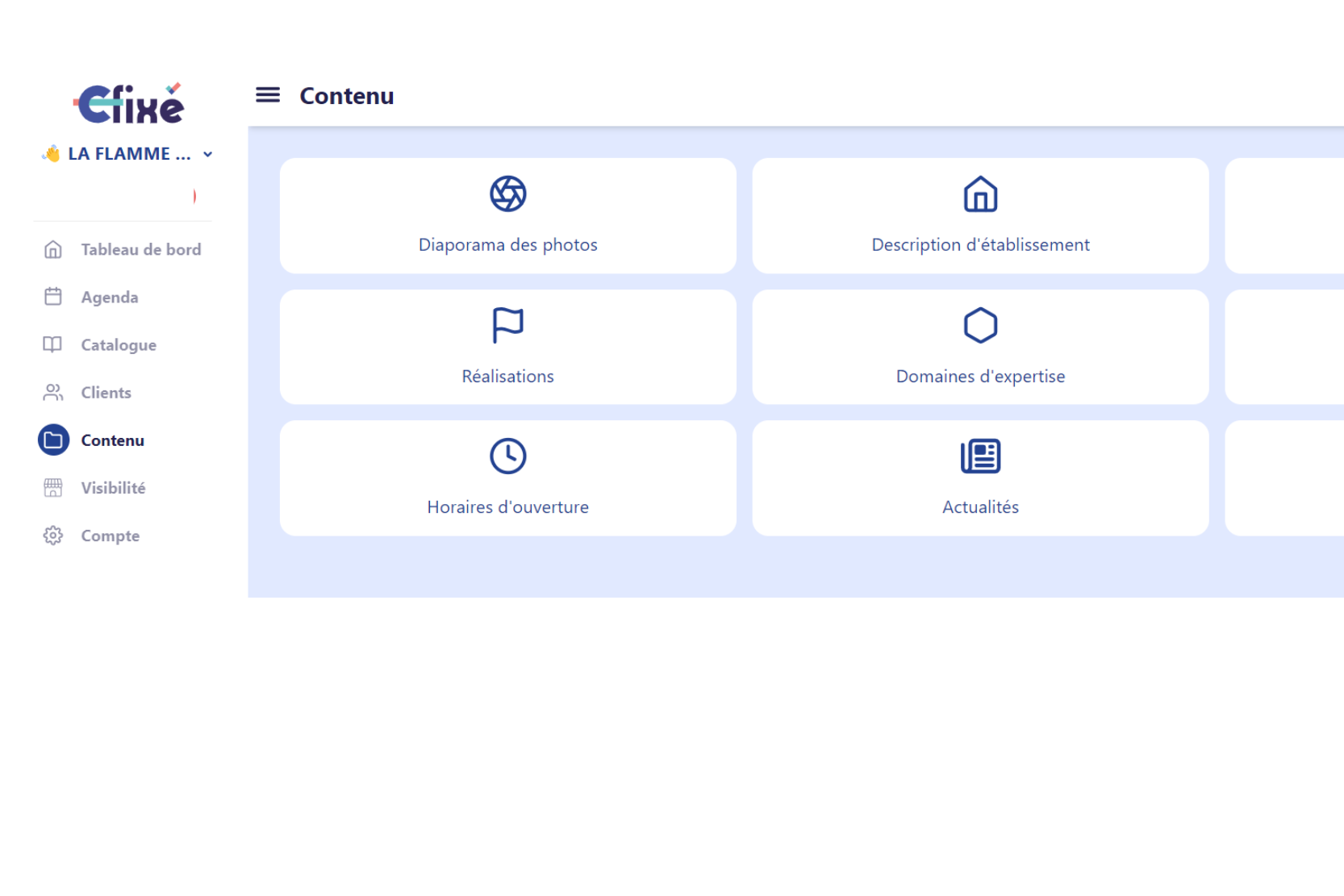 Le contenu de votre page vitrine sur la plateforme Cfixé.