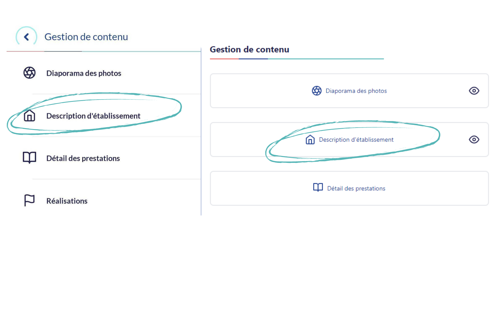 ou depuis la rubrique : "Gestion de contenu" > "Description d'établissement"