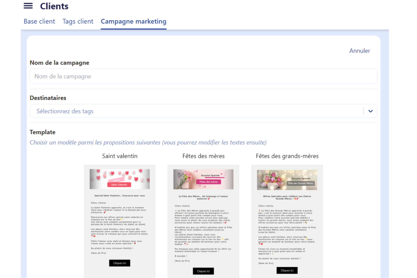 - Lien Automatique : Un lien vers votre site Cfixé est inclus automatiquement dans l'email pour encourager les réservations ou pour en savoir plus sur vos services.